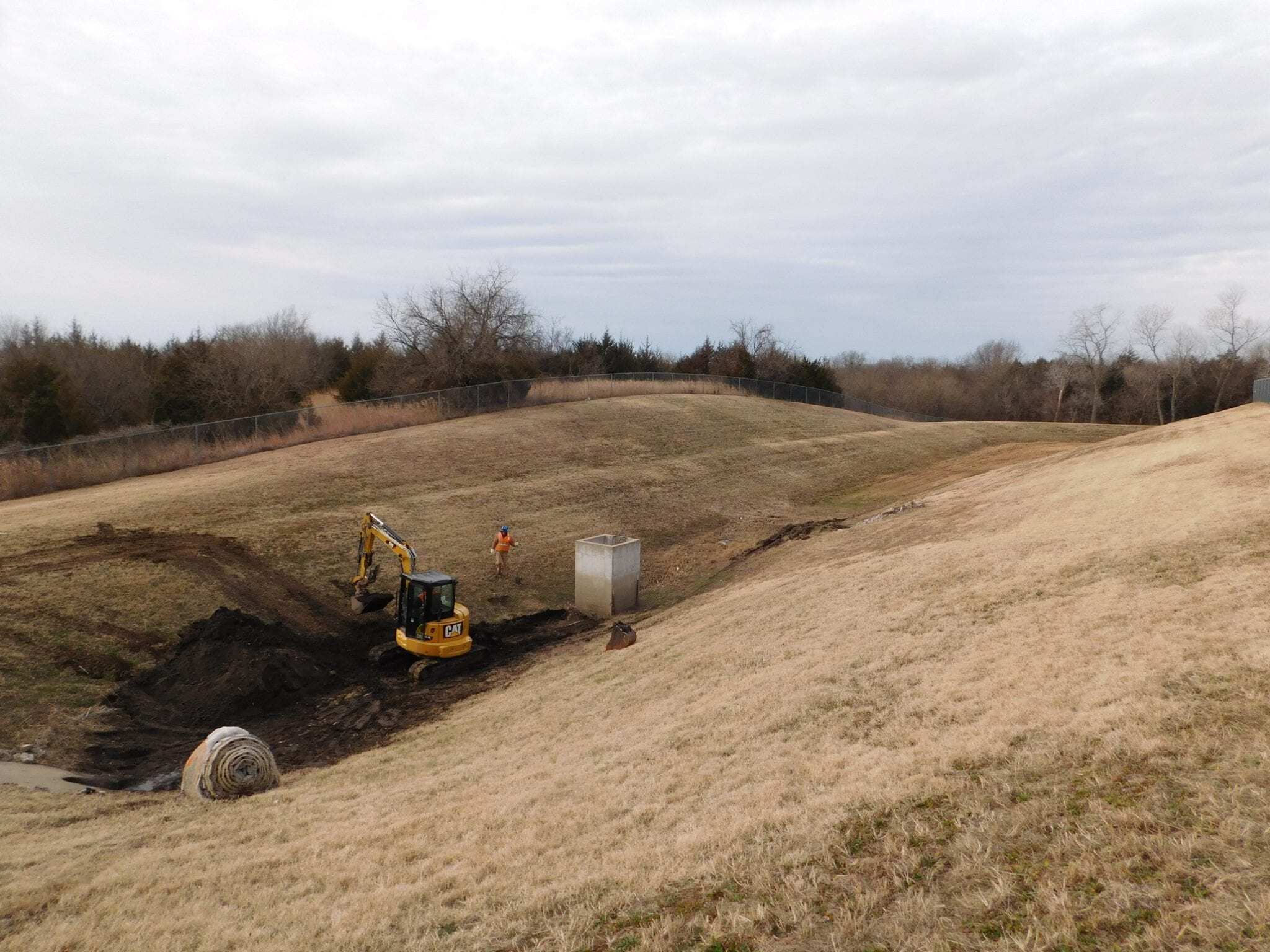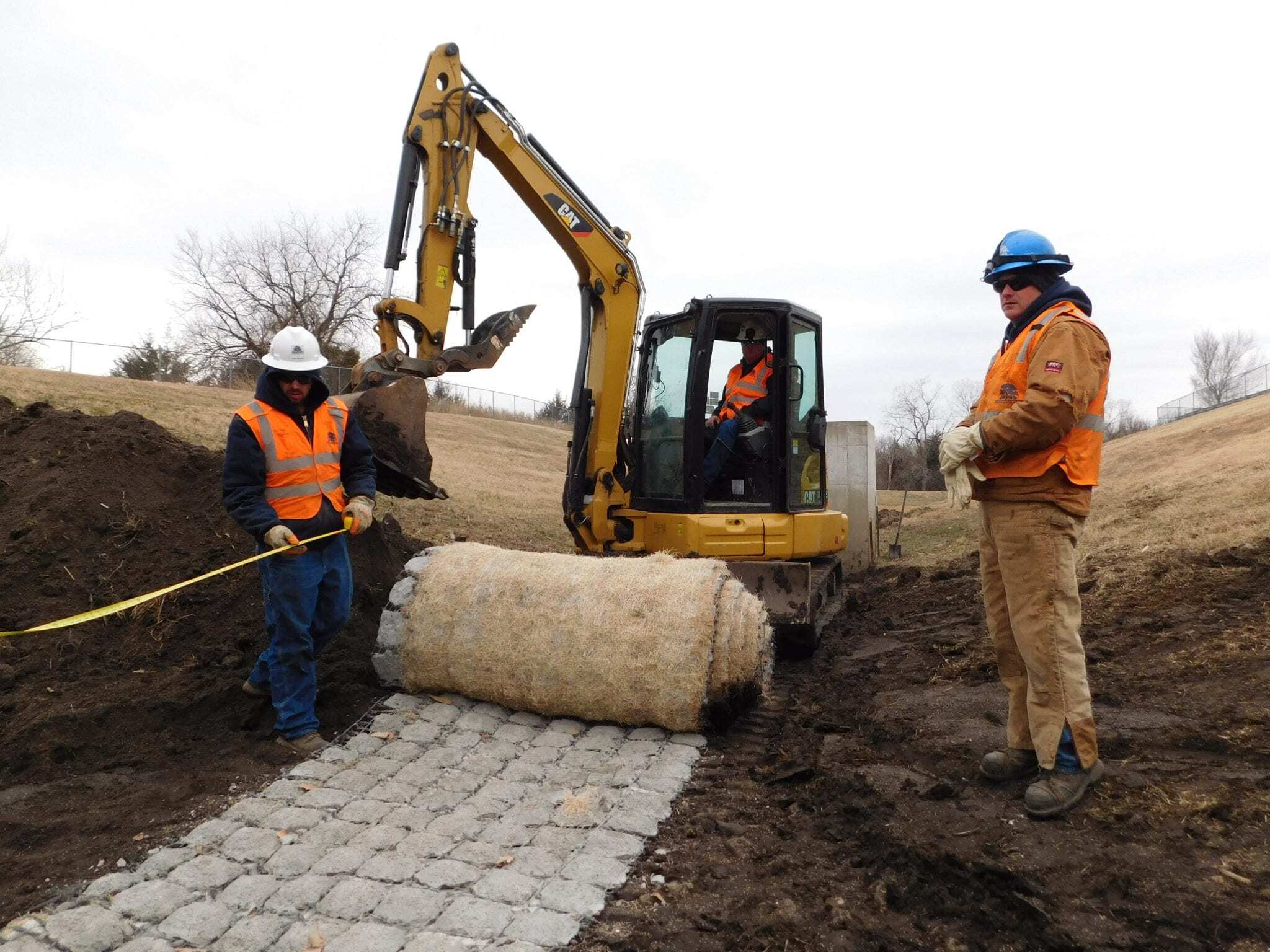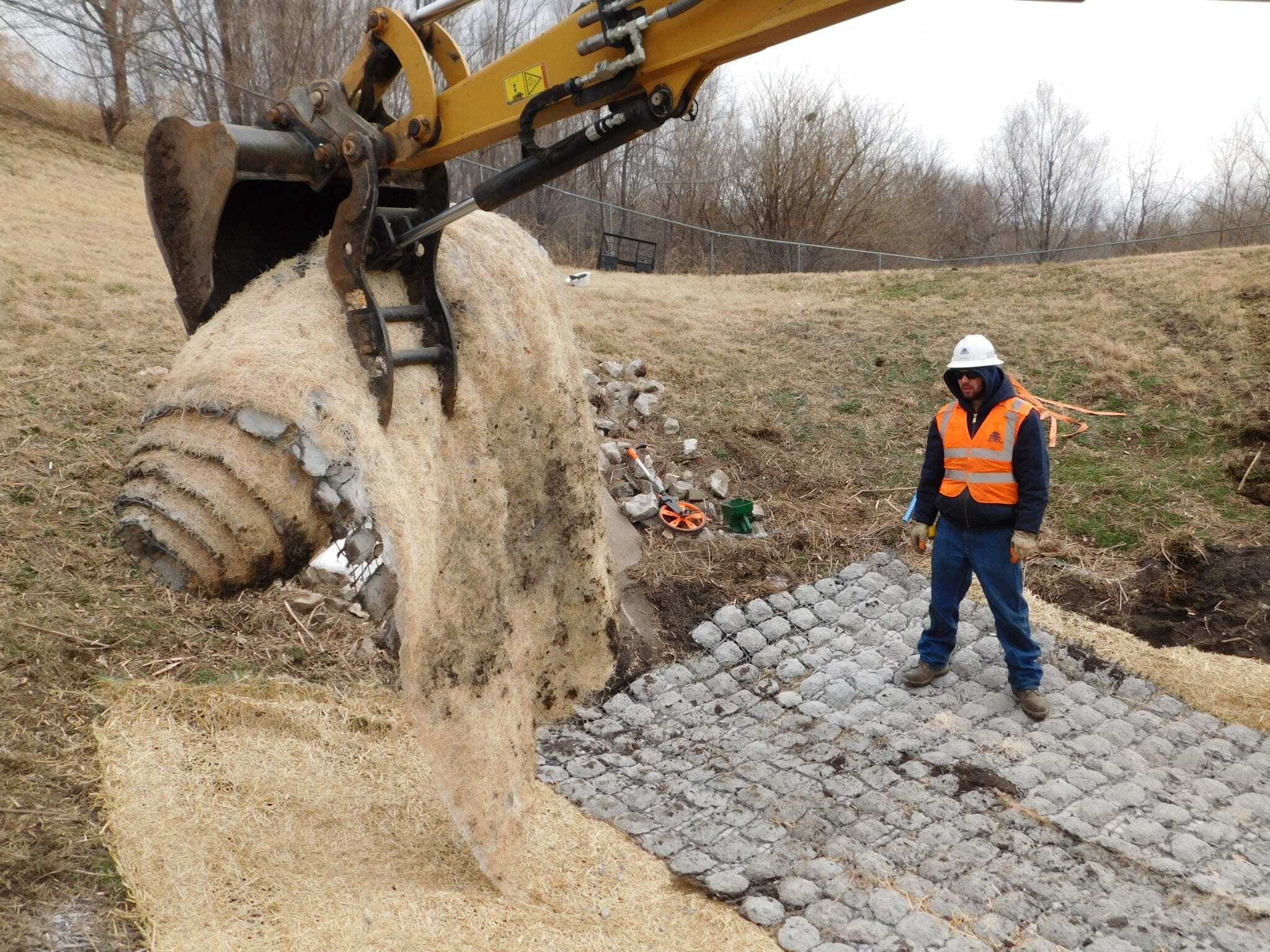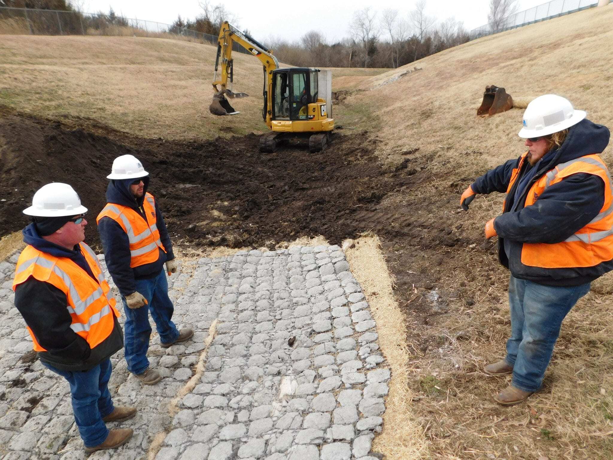 “We put down the same types of indigenous grasses that are in these basins in Kansas – our fescue and tall grass,” Vance said. “We seeded the graded basin and laid the concrete blanket on top.”